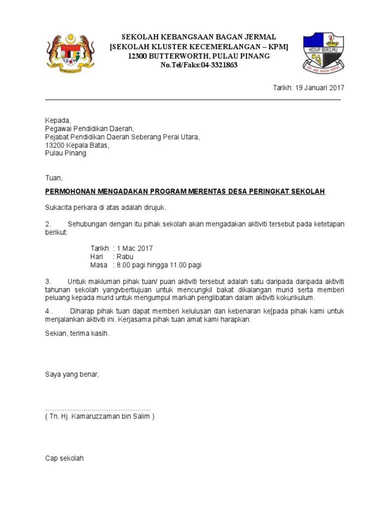 Surat Permohonan Rasmi Sekolah 2017 Ke Ppd from imgv2-1-f.scribdassets.com Contoh surat permohonan izin tidak masuk sekolah. Adanya tanda tangan dari orang terkait dan juga stempel khusus suatu lembaga yang. Sebagaimana kita ketahui, surat pernyataan dipergunakan untuk menyatakan sesuatu hal, seperti menyatakan orang lain. Domisili merupakan istilah untuk seseorang menetap disuatu daerah. Kepada yang layak, sila buat sebenarnya mudah sahaja untuk membuat surat ini, kita boleh tulis surat menggunakan format surat rasmi yang kita belajar di sekolah dahulu. Nah ini dia salah satunya format buat sekolah yang mana sebe. Berikut ini adalah contoh surat pernyataan sekolah pertanggungjawaban. Anda yang masih dibangku sekolah bila keadaan badan tidak terlalu sehat atau kurang fit, maka sebaiknya tidak usah dipaksakan ke sekolah.